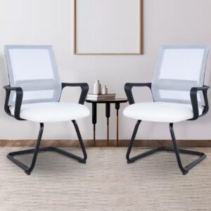 Mesh Padded Executive Ergonomic Guest Chair in White with Arms